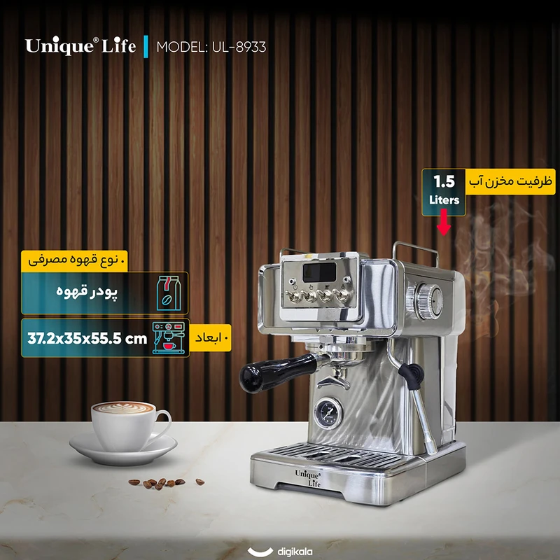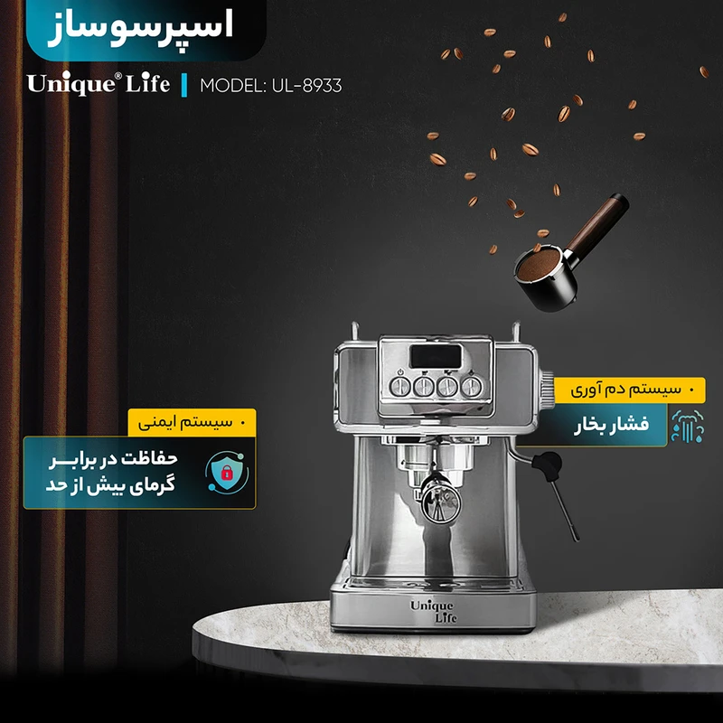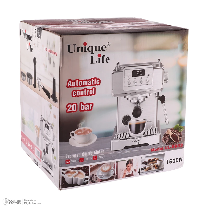 با اسپرسو ساز 1000 میلیلیتر یونیک لایف مدل UL-8933، لذت تهیه اسپرسوی تازه و خوشعطر را در خانه تجربه کنید. طراحی شیک، عملکرد قدرتمند و ظرفیت بالا، این دستگاه را به انتخابی ایدهآل برای دوستداران قهوه تبدیل کرده است. همین حالا تهیه کنید و هر روز خود را با انرژی بینظیر شروع کنید!
